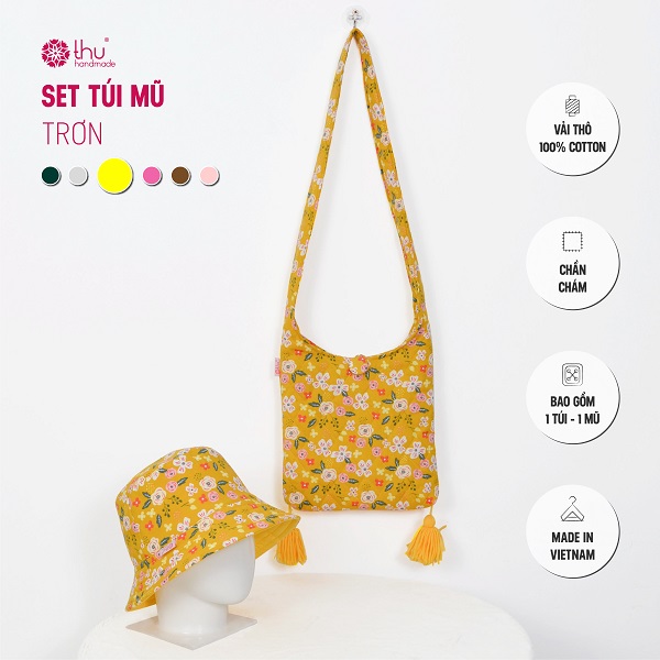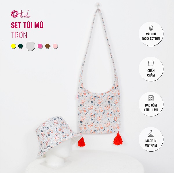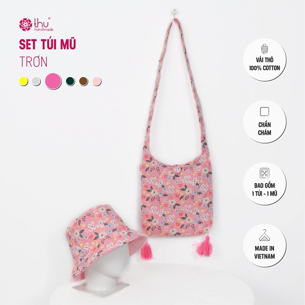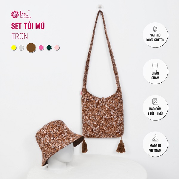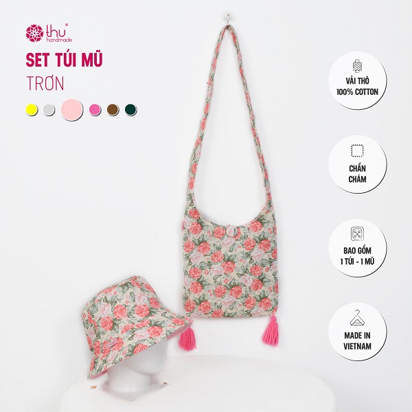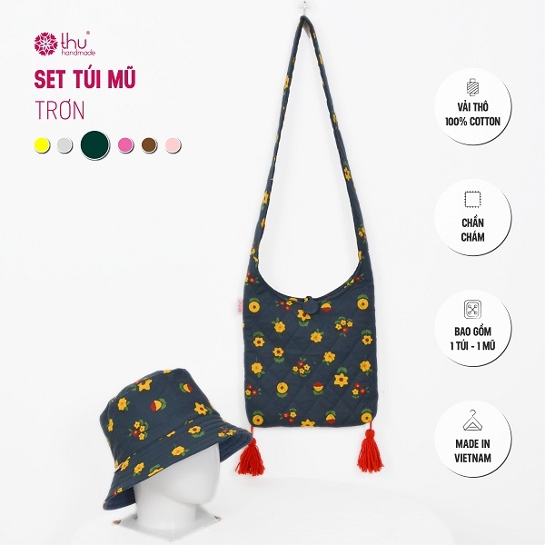 Set túi – mũ chất liệu vải thô cotton chần bông tỉ mỉ, từng đường may đều đặn như ôm trọn cả mùa hè trong từng chi tiết.