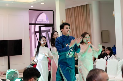(Tiết mục văn nghệ mở màn với ca khúc "Ngày Xuân Long Phụng Sum Vầy" do tốp ca P.Kinh doanh biểu diễn)