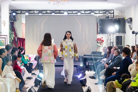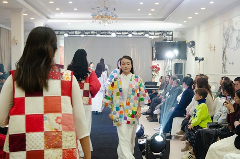 (Phần trình diễn thời trang ra mắt những sản phẩm áo chần bông Quilting kết hợp với áo dài trắng làm nên một cái nhìn rất ấn tượng)