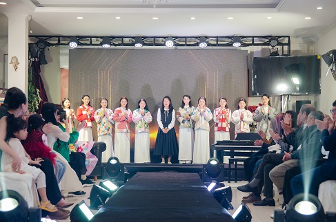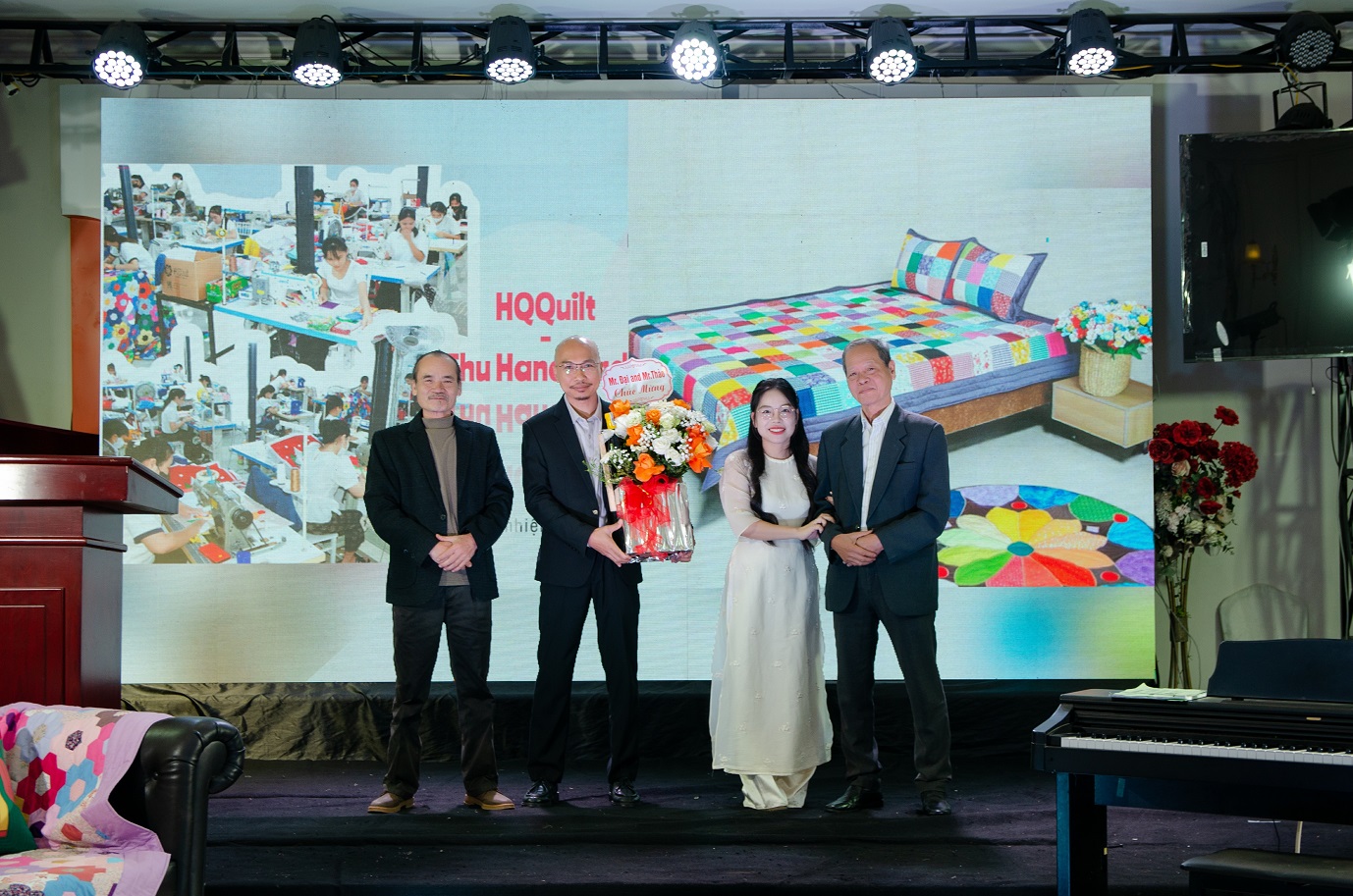 Một điểm nhấn đặc biệt khiến mọi ánh nhìn hướng về sân khấu chính là chương trình trình diễn BST Áo Chần Bông Quilting và Phụ kiện thời trang mới của công ty. Những mẫu thiết kế tinh tế, sáng tạo kết hợp với áo dài trắng truyền thống không chỉ thu hút sự chú ý của tất cả khách mời mà còn thể hiện đậm nét tinh thần sáng tạo trong văn hoá HQQuilt.