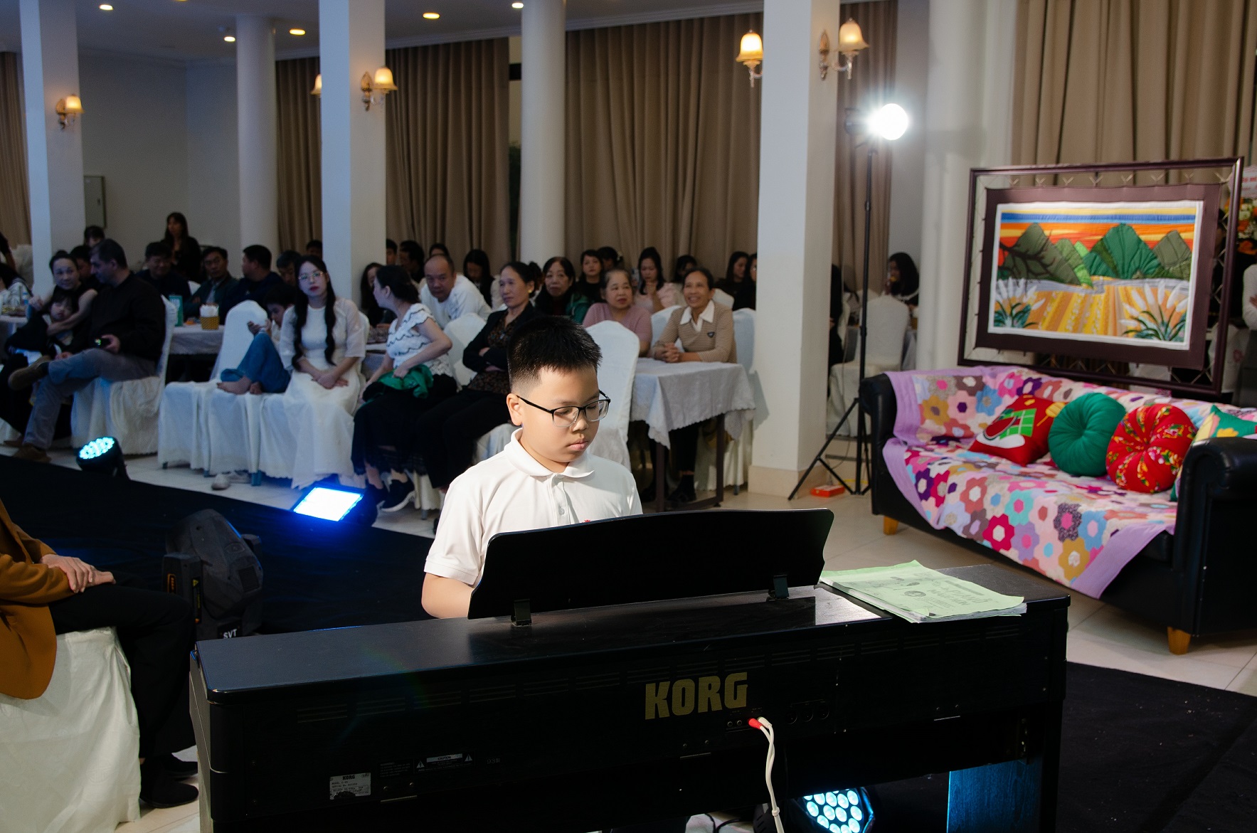 Sau những phần trang trọng là những khoảnh khắc nhẹ nhàng với tiết mục piano sâu lắng, mang đến phút giây bình yên cho tất cả.