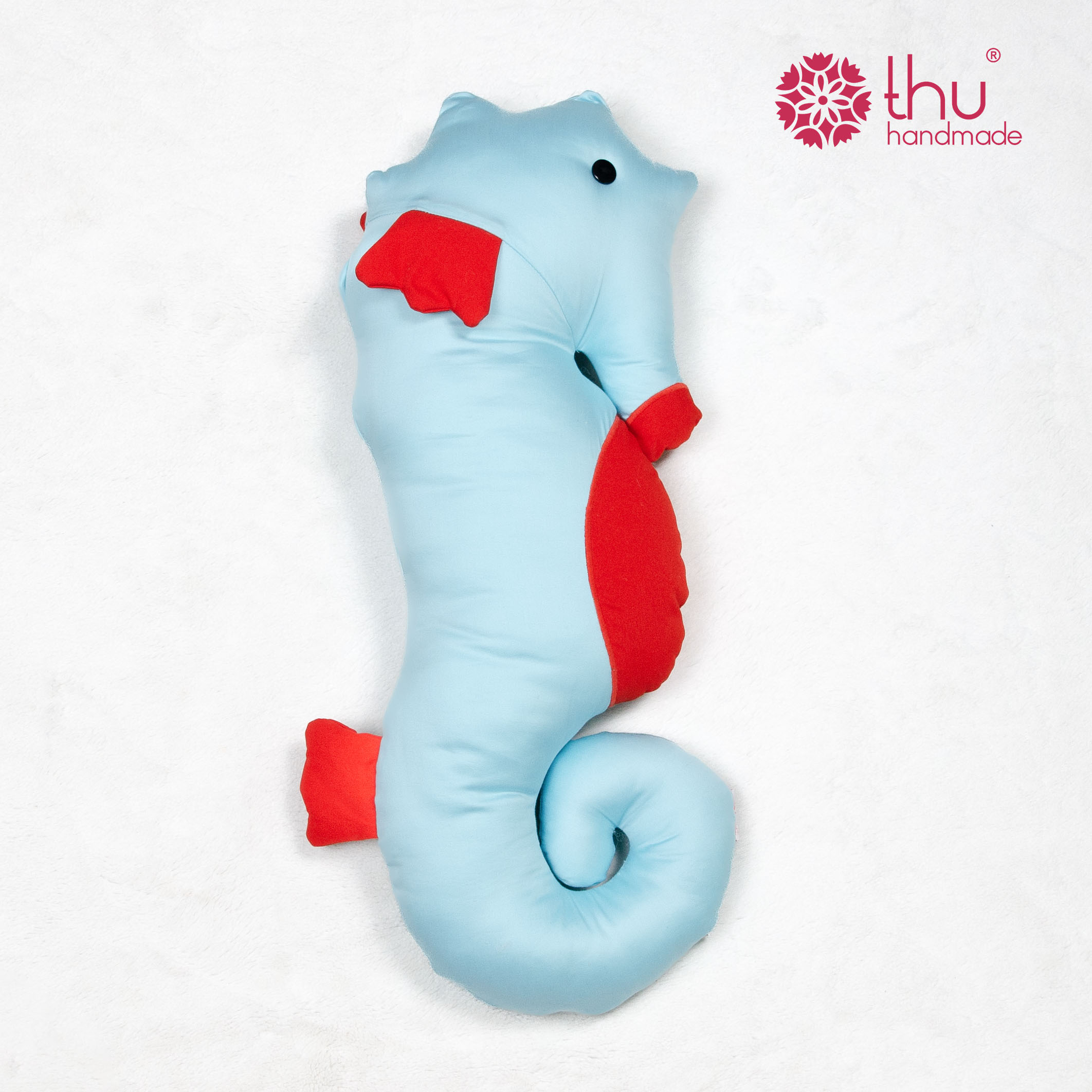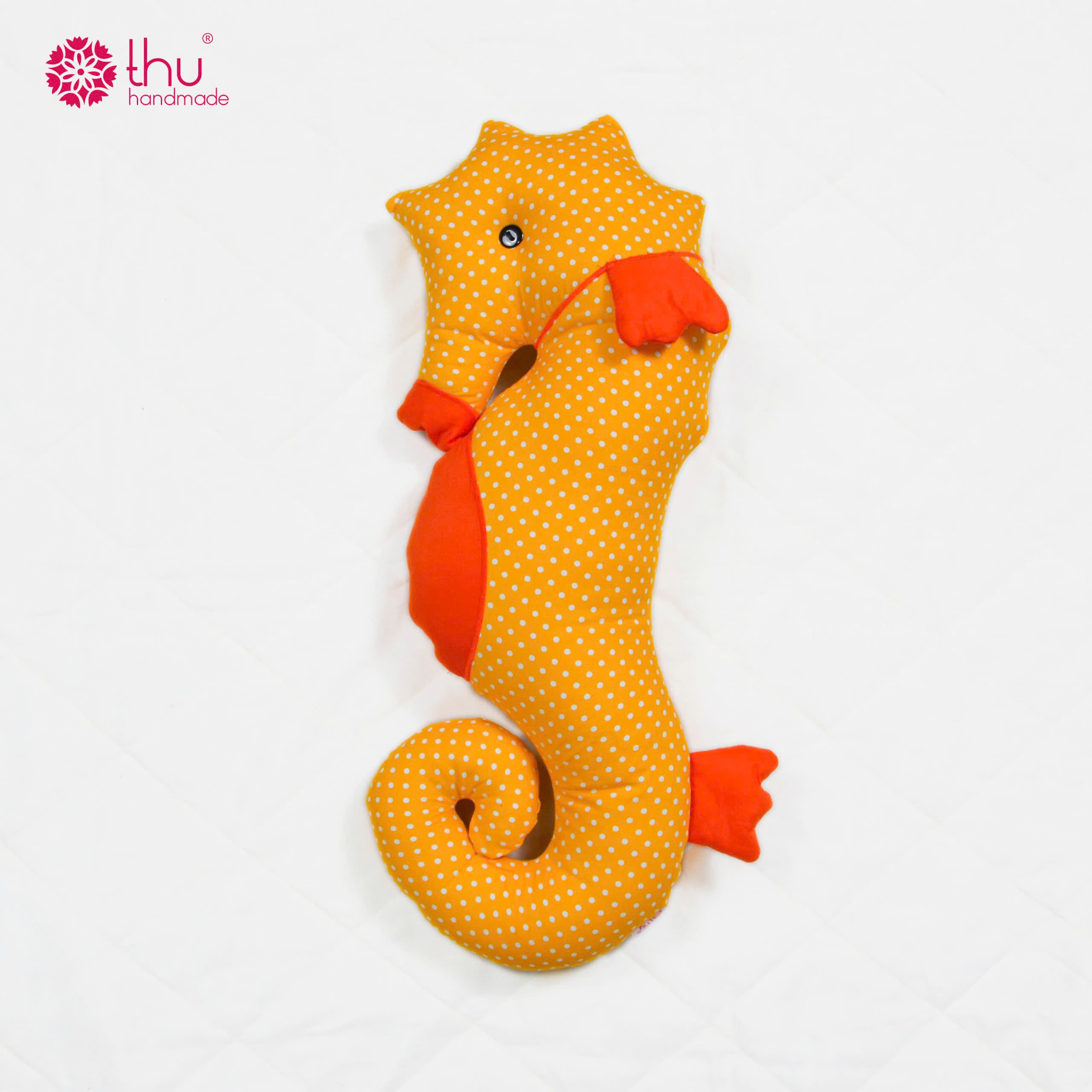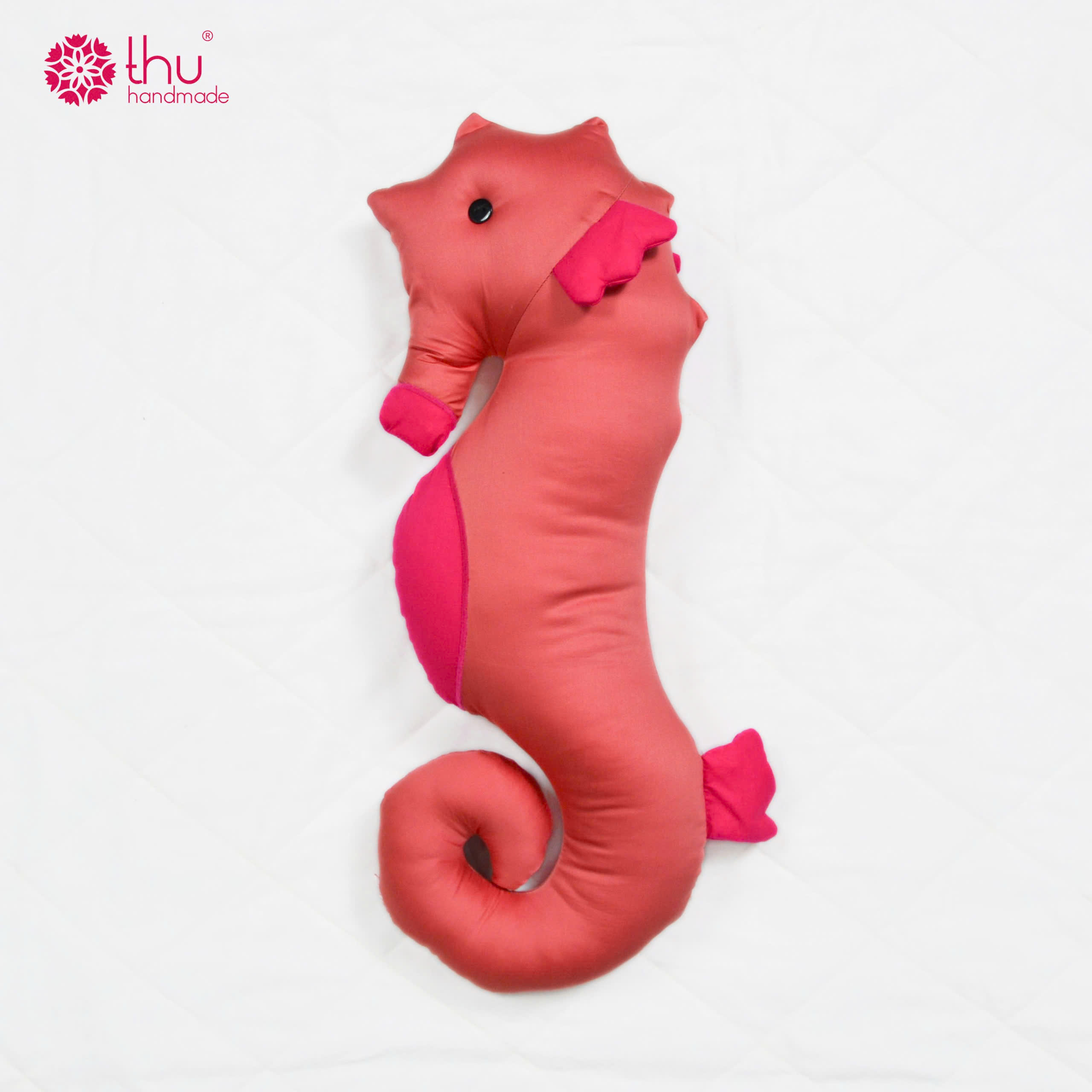 Sử dụng vải thô lụa chọn lọc, mềm tay nhưng vẫn giữ được độ chắc chắn, cá ngựa nhồi bông không bóng bẩy mà mang vẻ gần gũi, thân thiện, phù hợp với cả trẻ nhỏ lẫn người lớn yêu phong cách “natural living”.