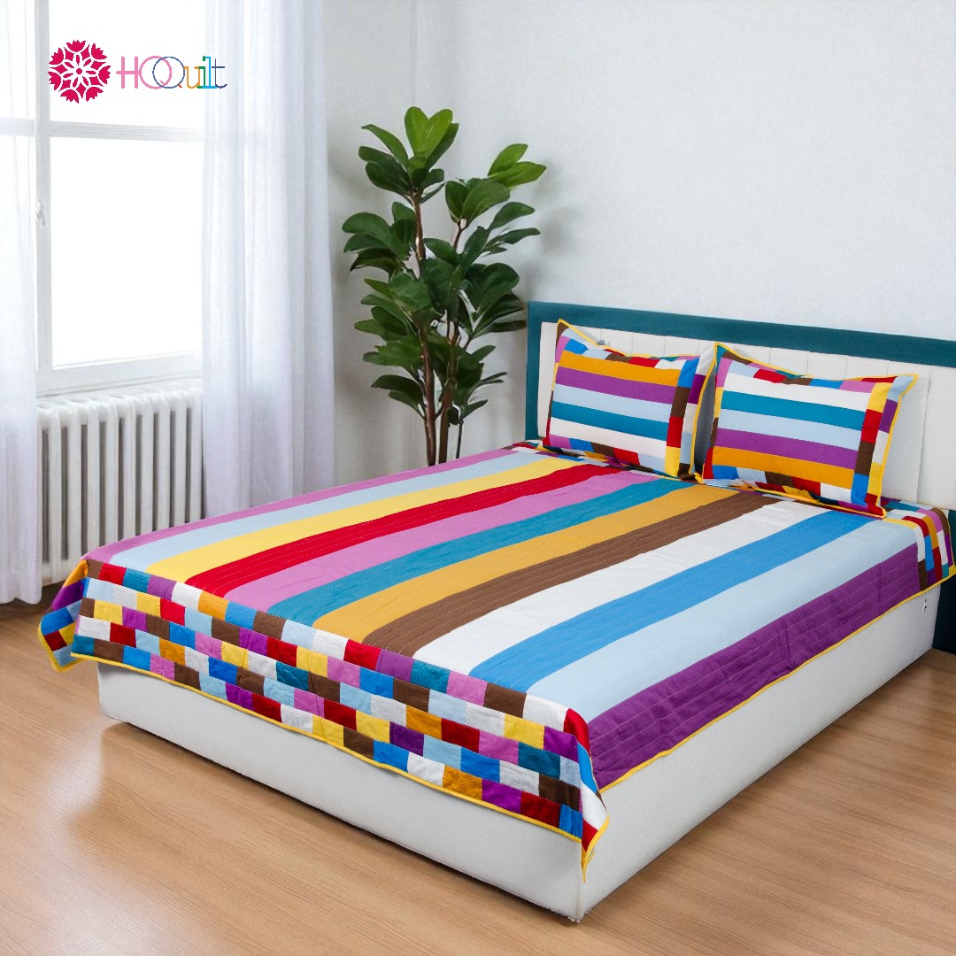 Mẫu chăn được lấy cảm hứng từ những cánh đồng hoa tulip của đất nước Hà Lan xinh đẹp. Bằng phương pháp Quilt dải, HQQuilt đã tạo ra 1 sản phẩm quilting tuyệt đẹp từ những dải màu thuần chất nhất. Bởi vậy, bức tranh Cánh đồng hoa tulip của chúng tôi đã trở nên gần gũi hơn, ấm áp hơn, an toàn hơn vì chứa đựng cảm xúc và chất "người" trong đó.
