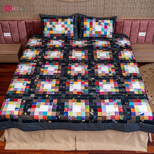- Sử dụng kỹ thuật ghép vuông tỉ mỉ, hàng lối ngay ngắn, mỗi ô vải là một “mảnh ký ức nhỏ” được gìn giữ và thêu dệt.