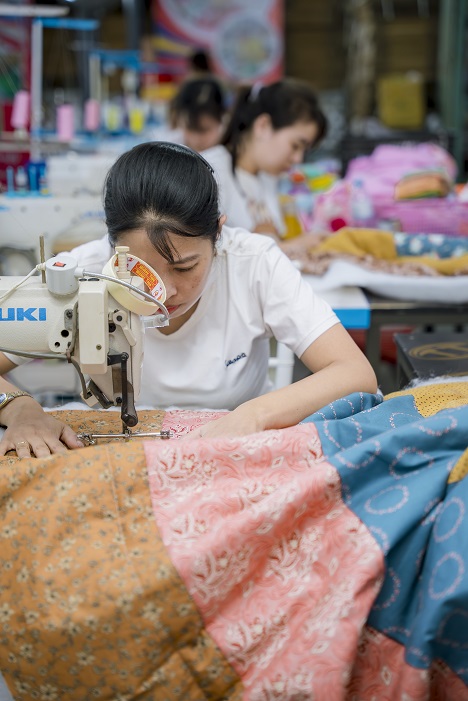 Mỗi sản phẩm quilting đều là một hành trình của thủ công – và cả tâm hồn. Với “Chăn Huế”, hành trình ấy bắt đầu từ sự lựa chọn cẩn trọng từng chất vải – cotton thân thiện, thoáng, có độ mềm-thô vừa phải, phù hợp với khí hậu và cách sống Việt.