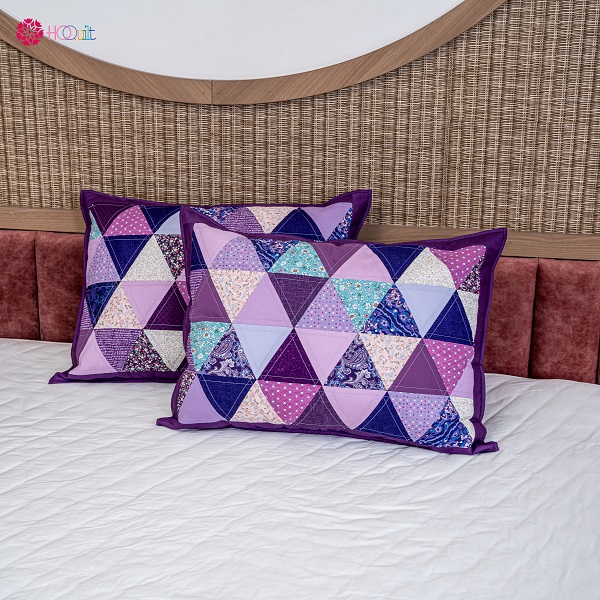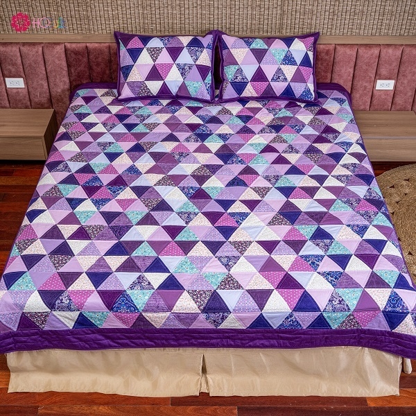 Chăn quilt ghép tam giác được tạo thành từ nhiều mảnh vải với màu sắc và hoa văn khác nhau, tạo nên một tổng thể độc đáo và bắt mắt. Mỗi chiếc chăn đều là một tác phẩm nghệ thuật riêng biệt, thể hiện sự sáng tạo và cá tính của người làm.