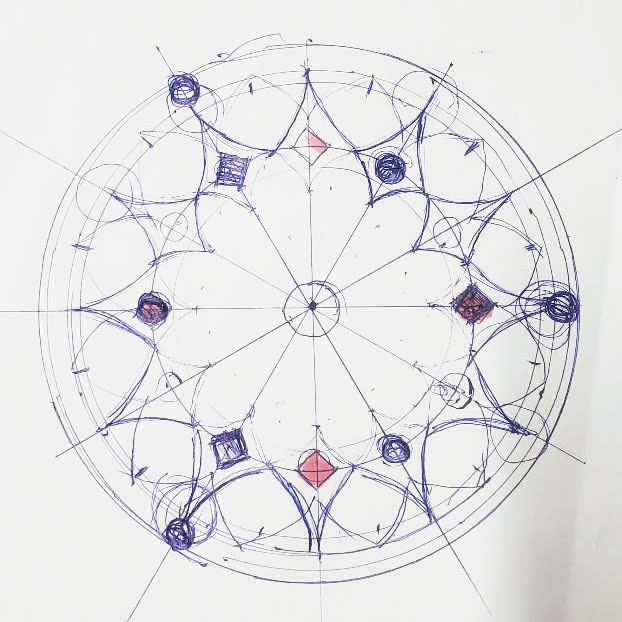 Phác thảo Hoạ tiết Ba vuông bảy tròn. Ảnh: HQQuilt