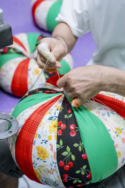 Một trong những công đoạn quan trọng nhất tạo nên “linh hồn” của gối bí chính là bước rút nút định hình. Đây là công đoạn đòi hỏi cả kỹ thuật lẫn sức lực, bởi gối càng căng thì thao tác càng khó. Chỉ những người thợ có kinh nghiệm lâu năm mới có thể kiểm soát lực kéo và độ cân đối để tạo nên những múi gối tròn đầy, căng đẹp mà vẫn đảm bảo độ bền. Chính ở chi tiết này, sự khác biệt giữa sản phẩm thủ công và sản phẩm công nghiệp được thể hiện rõ rệt, không chỉ ở hình dáng, mà ở độ tinh xảo và cảm giác “có hồn” mà sản phẩm mang lại