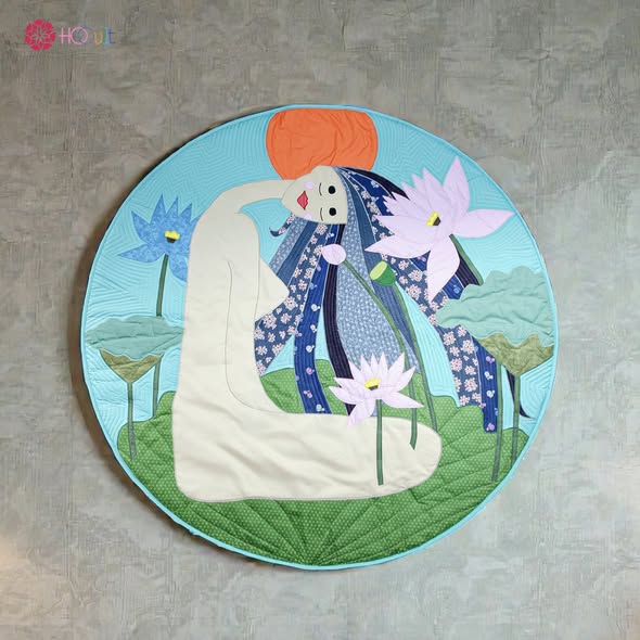 Thảm Đợi HQQuilt được sinh ra từ tinh thần đó. Không phải để lấp đầy một bức tường, không phải để gây ấn tượng tức thì. Thảm Đợi hiện diện như một khoảng lặng. Một nhịp thở chậm giữa căn nhà. Một lời nhắc rằng: có những giá trị không đo bằng tốc độ, mà đo bằng thời gian ta dám ở lại với nó.