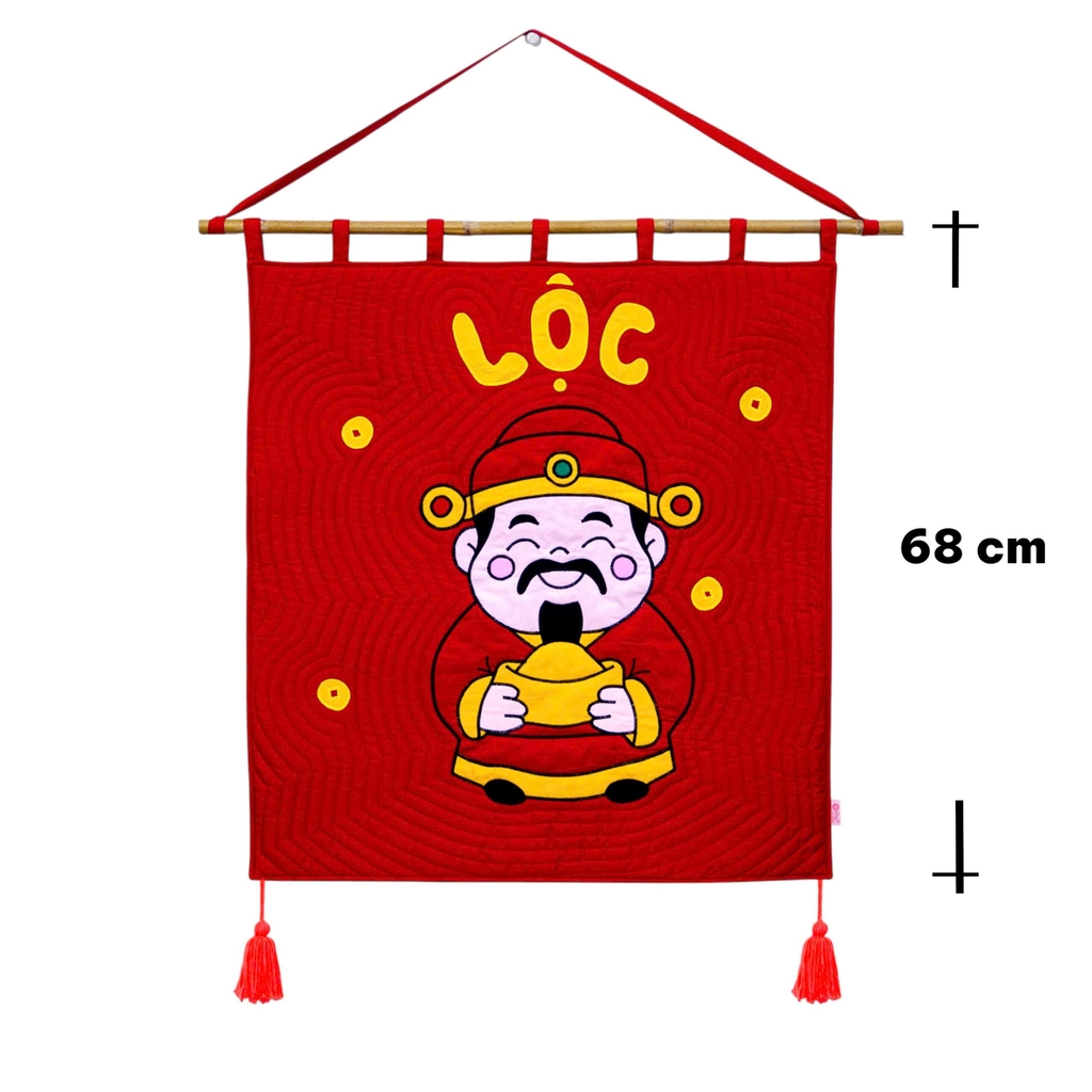 Tranh Thần Tài – Chữ Lộc | Nghệ thuật quilt áp vải thủ công