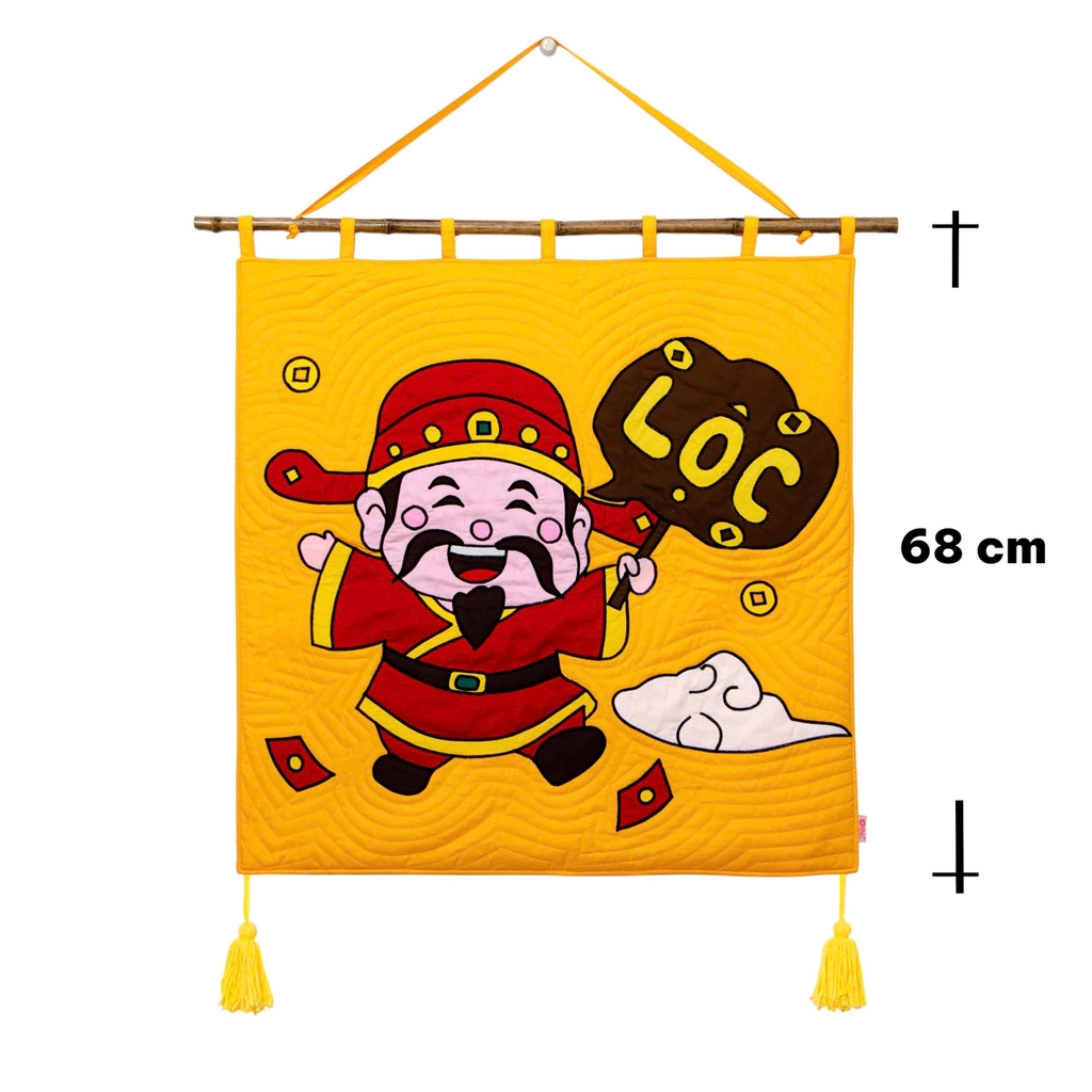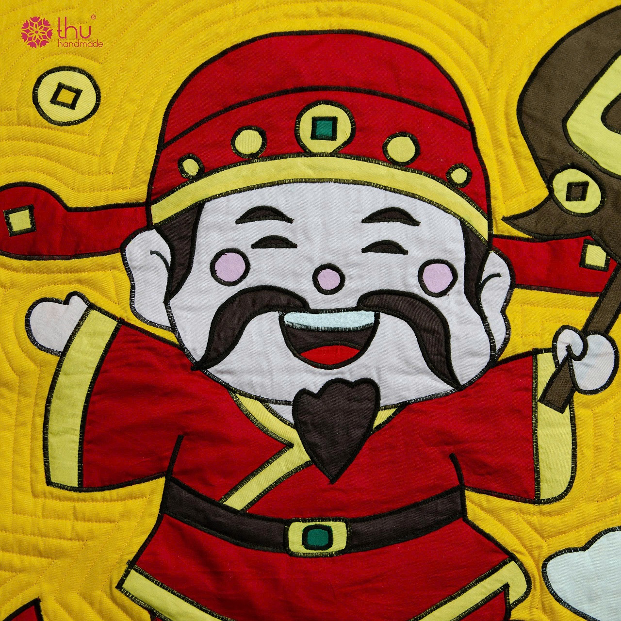 Tranh Thần Tài – Chữ Lộc | Nghệ thuật quilt áp vải thủ công