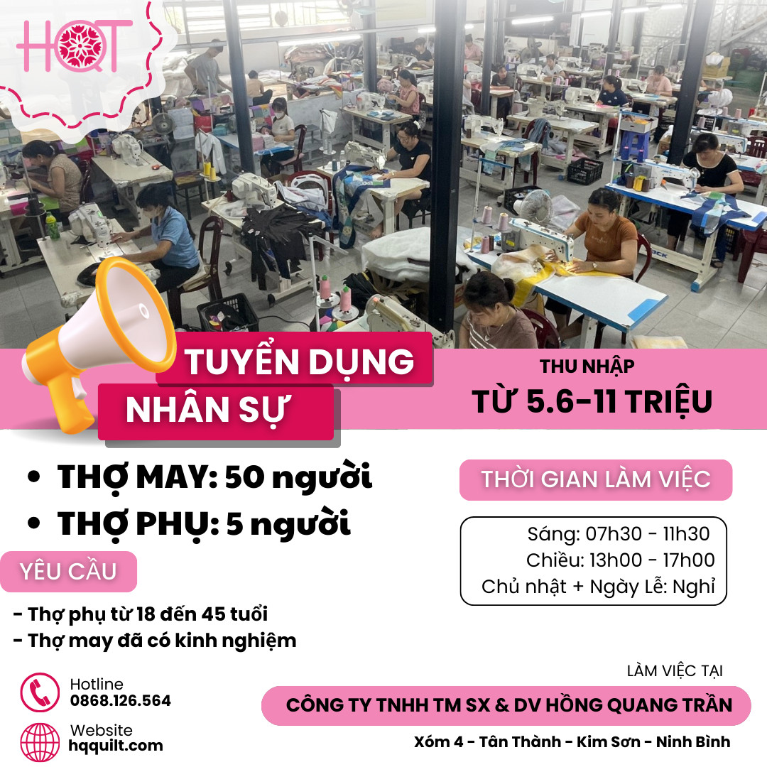 Hiện tại HQT đang tổ chức một mô hình sản xuất MỞ, thân thiện, gần gũi với tiêu chí: Mỗi Công nhân là một Nghệ nhân - Nghệ nhân Quilting.